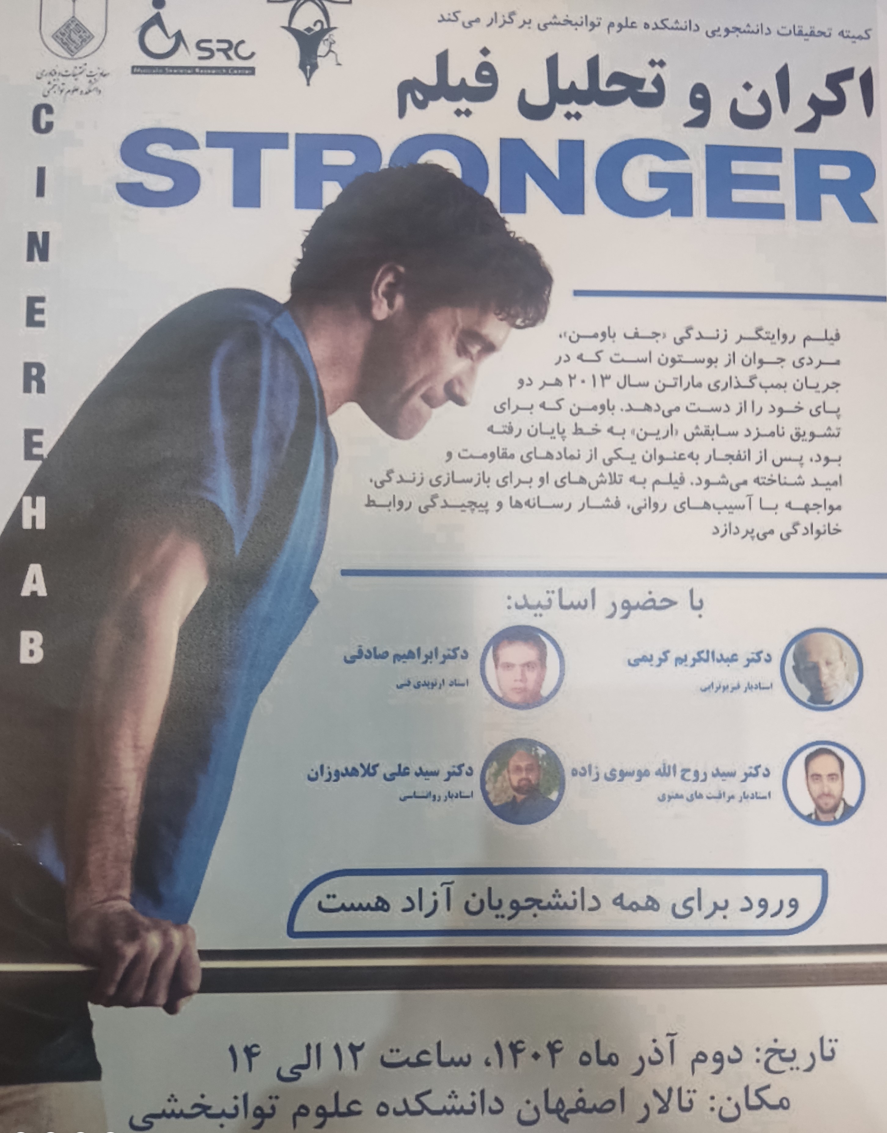 اکران و تحلیل فیلم stronger اکران و تحلیل فیلم stronger در دانشکده توانبخشی توسط اساتید دانشکده و رئیس مرکز تحقیقات جناب آقای دکتر صادقی